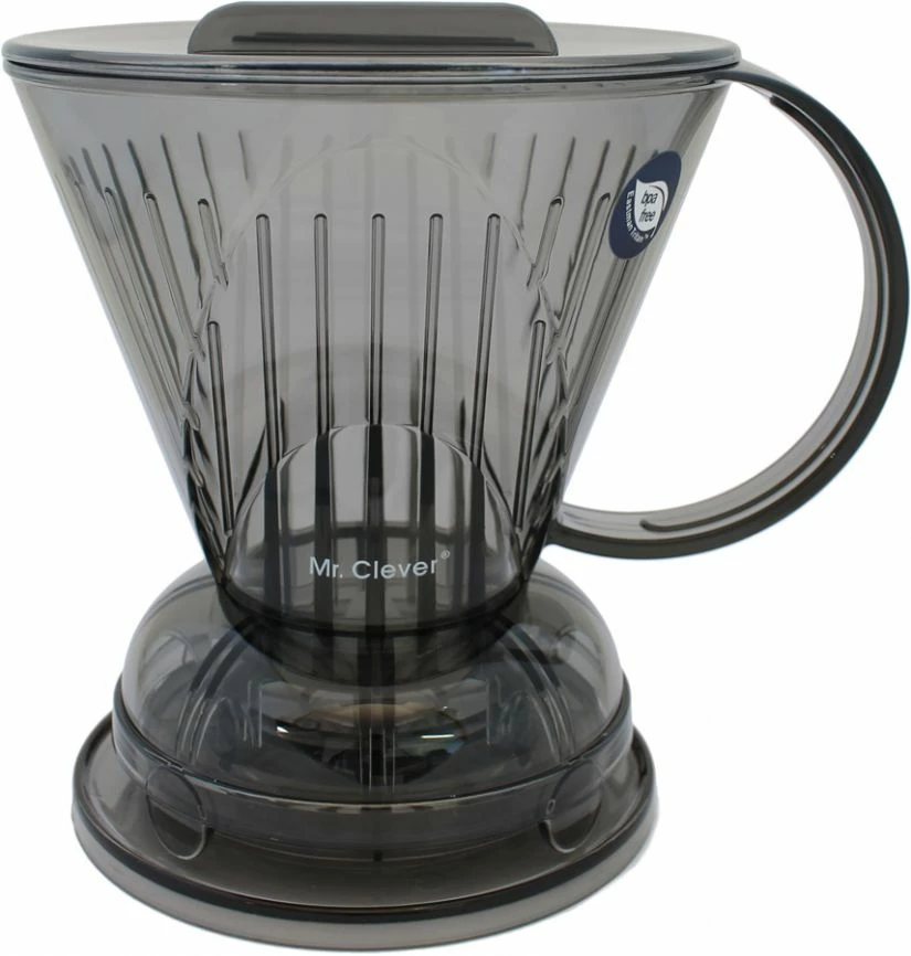 Clever Coffee Dripper is a genious dripper that combines the best features of a coffee dripper and a french press. The dripper features a shut off valve in the bottom of the dripper, that allows for a longer brew time than a regular dripper. When the desired brew time is reached, place the dripper on top of a cup or a mug, and the valve opens, allowing the coffee to flow into the cup.