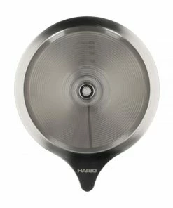 Hario Double Mesh Metal Dripper V60-02 made solely of stainless steel. The metal filters allow the coffee oil to slowly pour through along with a rich flavour. In the dripper two finely etched mesh filters overlap.