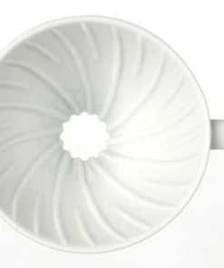 The V60 name comes from its design. The cone is V shaped and at 60 degrees angle. According to Hario research this is the optimal way to hand brew coffee. The V60 dripper has a single large hole, which allows you to determine the flavour of the ground coffee by adjusting the water flow. The Hario dripper has spiral ribs that maximize the expansion of the coffee by enabling air to escape while brewing.