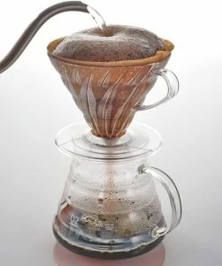 The plastic version is the least expensive choice among V60 drippers. Still, it is not any worse from other versions in terms of taste sensations. In addition, its plastic body provide durability and comfort if you want to use Hario V60 when travelling. Its conical form and special grooves on the inside of the dripper provide excellent water flow.