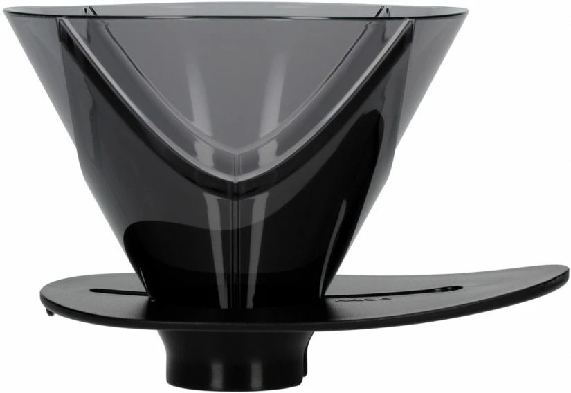 The Hario V60 Dripper Mugen lacks internal ribbing, so paper filters stick to it as coffee flows down the star-shaped grooves to slowly brew. The holder is removable, so you can also place the Mugen dripper as such on a stand to brew.