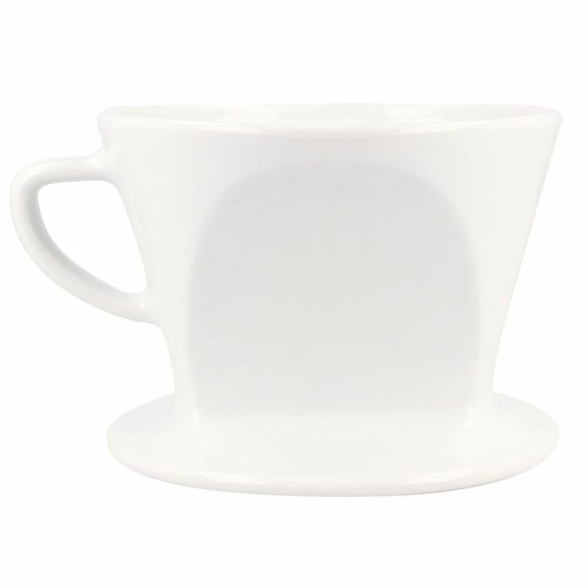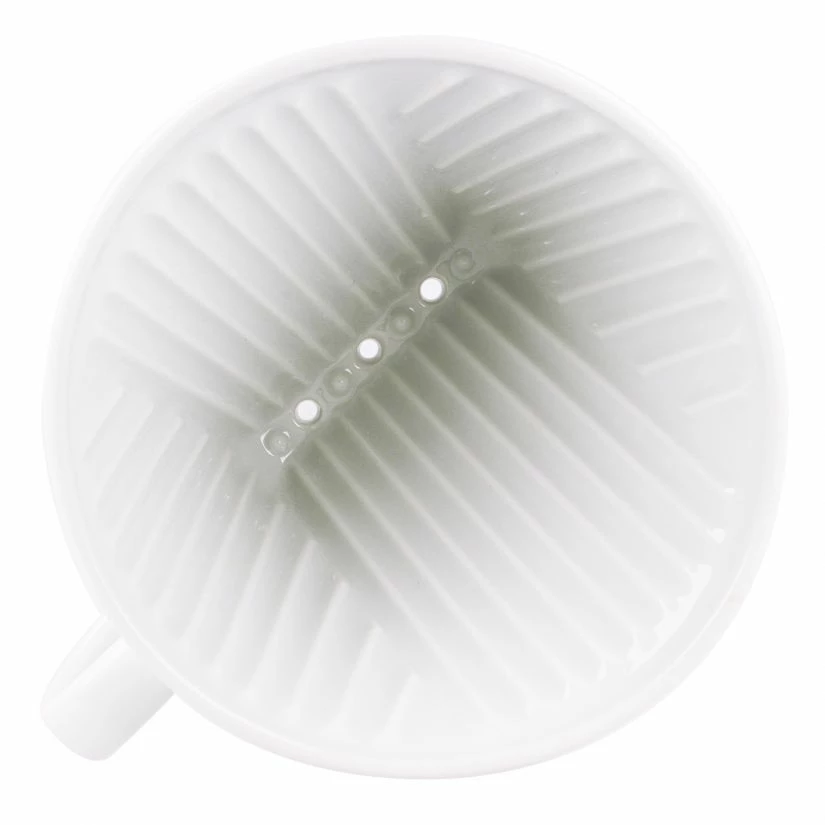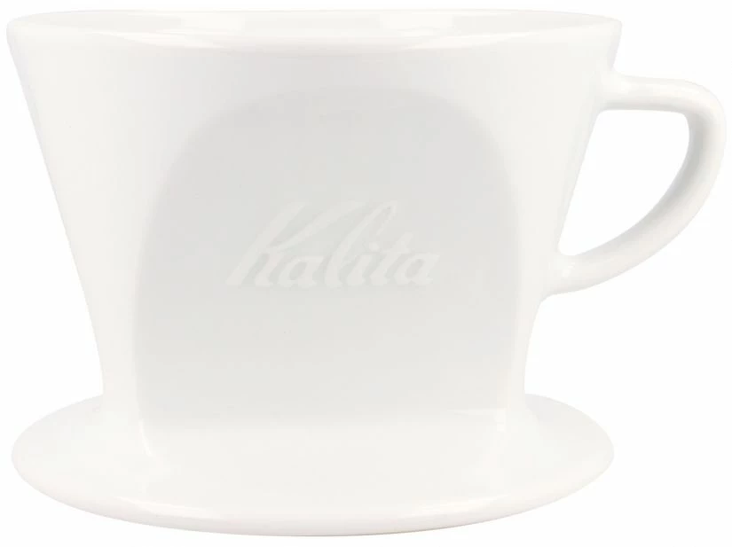 Kalita HA 102 ceramic wedge-shaped coffee dripper has groves on the inside to reduce the area of direct contact between filter paper and dripper. This design avoids the filter paper to stick to the side or bottom of the dripper and therefore ensures a smooth extraction of the pour over coffee. It also prevents loss of heat.