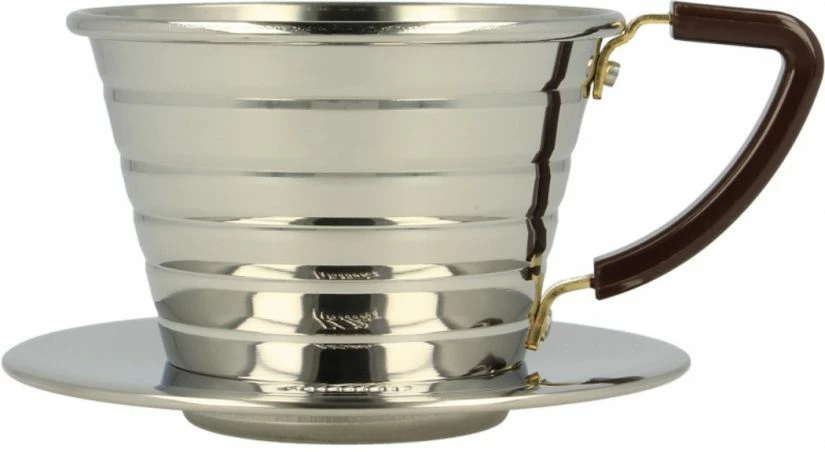 The Kalita Wave # 155 Stainless Steel Dripper has a cone shaped and flat-bottom design with three triangulated holes. The dripper is used with patented Wave paper filters, and it has crystal clear glass walls. The flat-bottom slows down the draining to encourage a more balanced and consistent coffee extraction. The Wave filters force the coffee grounds and water to remain in contact for the entire brew, encouraging even more consistency and balance. The Wave dripper fits with the Kalita glass server or can go directly on top of your coffee cup.