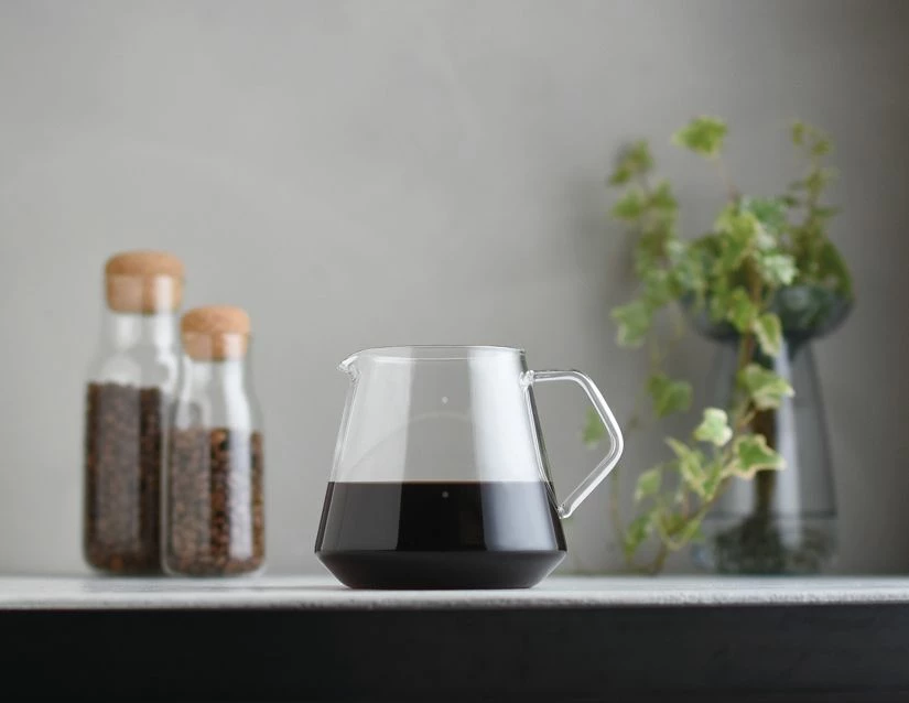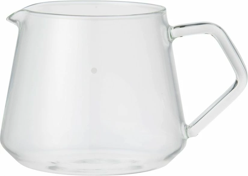 The Kinto SCS-S02 Coffee Server with measurement marks that indicate 2 cups or 4 cups of dripped coffee (300 ml and 600 ml). The smaller server only has marking for two cups (300 ml). Perfect for pour over coffee!