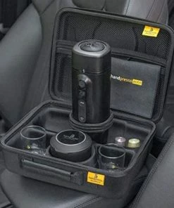 Simply connect the Handpresso espresso machine to the cigarette lighter in your car, add water and a Nespresso® compatible coffee capsule. In about 2.5 minutes, your espresso will be ready, tracked by a digital tracking/monitoring screen.