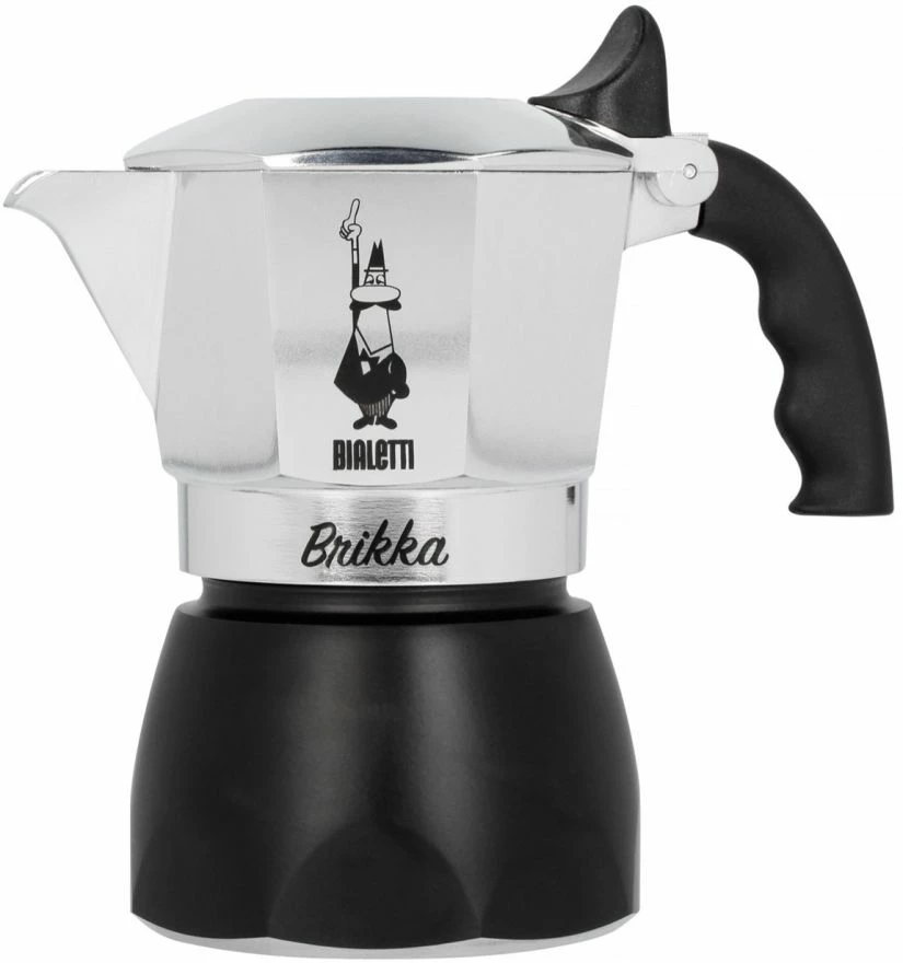 The Bialetti Brikka stovetop espresso maker has a unique pressure valve that creates a nice crema on top of the coffee. At the same time the valve makes the extraction more even and you get a more intense result. You will notice a difference compared to a regular stove top coffee maker! Brikka Restyling is a new version of the classic Brikka, now with an elegant black bottom part.