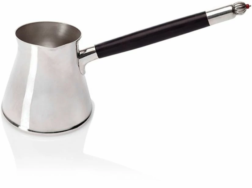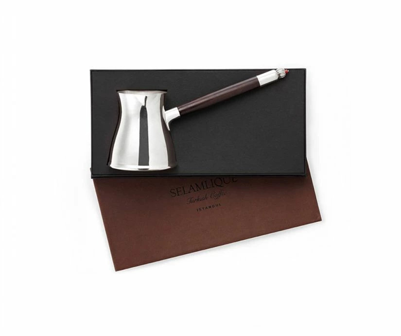 The cezve has an elegant ebony handle with coral detailing. Serve your Turkish coffee in style!