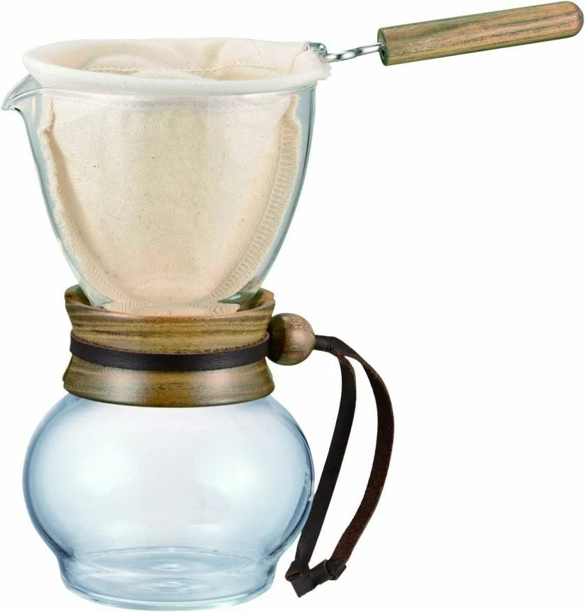 The set includes a cloth filter that needs just simple rinsing after brewing and you can use it repeatedly. With its stylish body and wood elements, it makes a perfect decoration of any interior. Capacity: 480ml