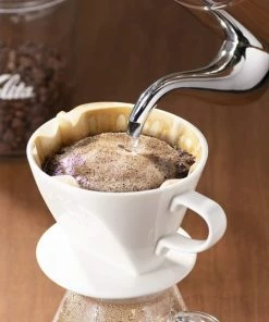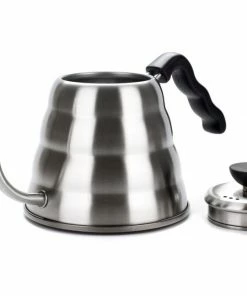 Kalita Coffee Pot stainless steel water kettle with a thin spout. The thin spout allows maximum control while pouring. Stainless steel has high thermal conductivity, which makes it suitable for the use on the stove or cooking plate. Perfect for pour over coffee.